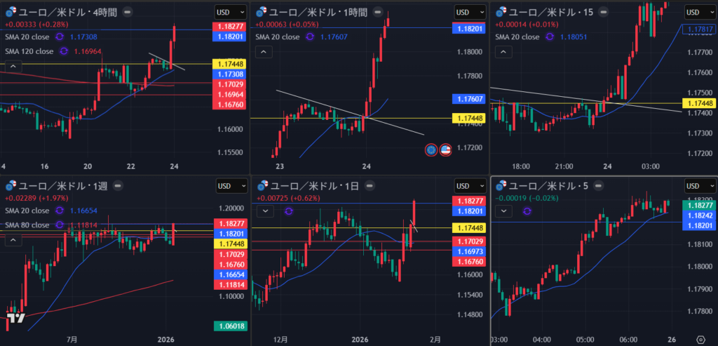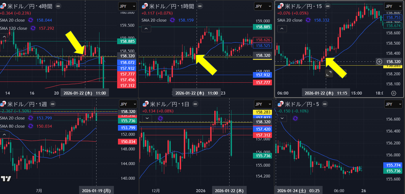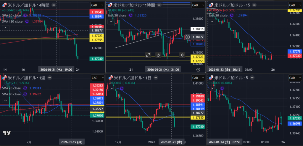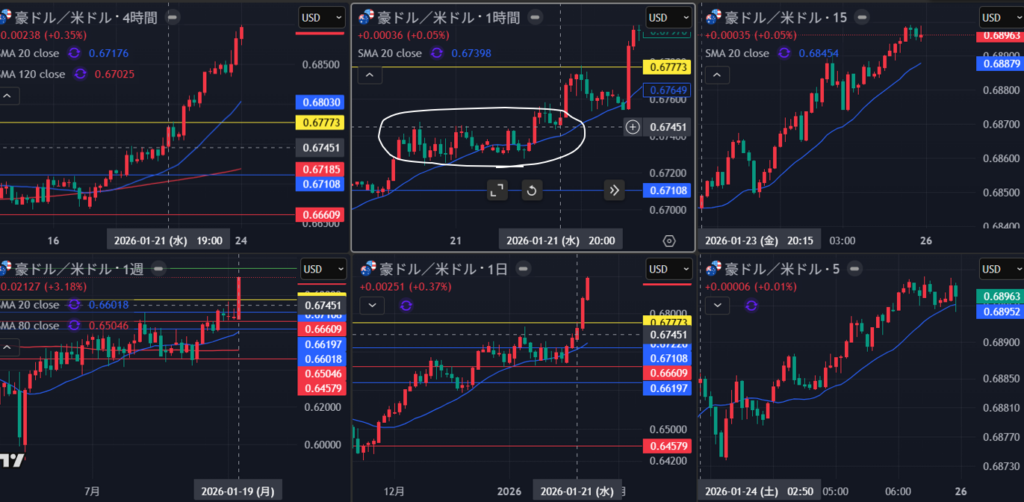 明確に4時間の戻り売り場面がない中で、上位足の波を獲るためには、1時間も重要になってくるが、