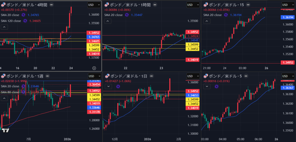 上位足の上昇の波を追いかける意味では、この1時間のゾーン抜けの押し目買いを狙えなかったのは