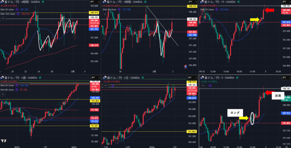 完全に日足の波待ちで、4時間トレ転してからって考えしかなかったが、1波狙いの条件は揃って