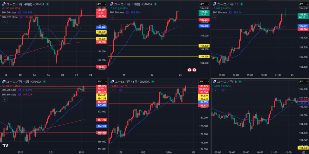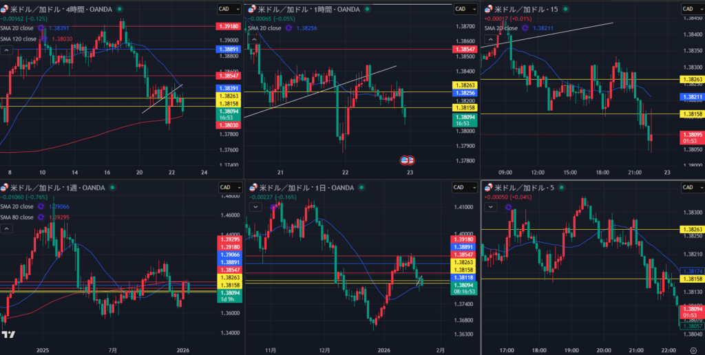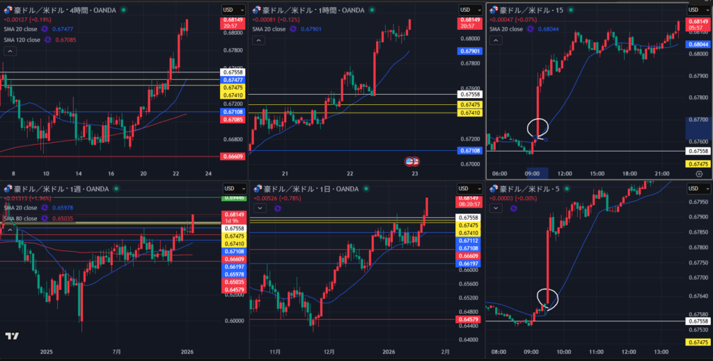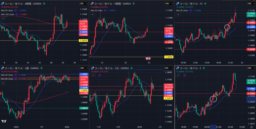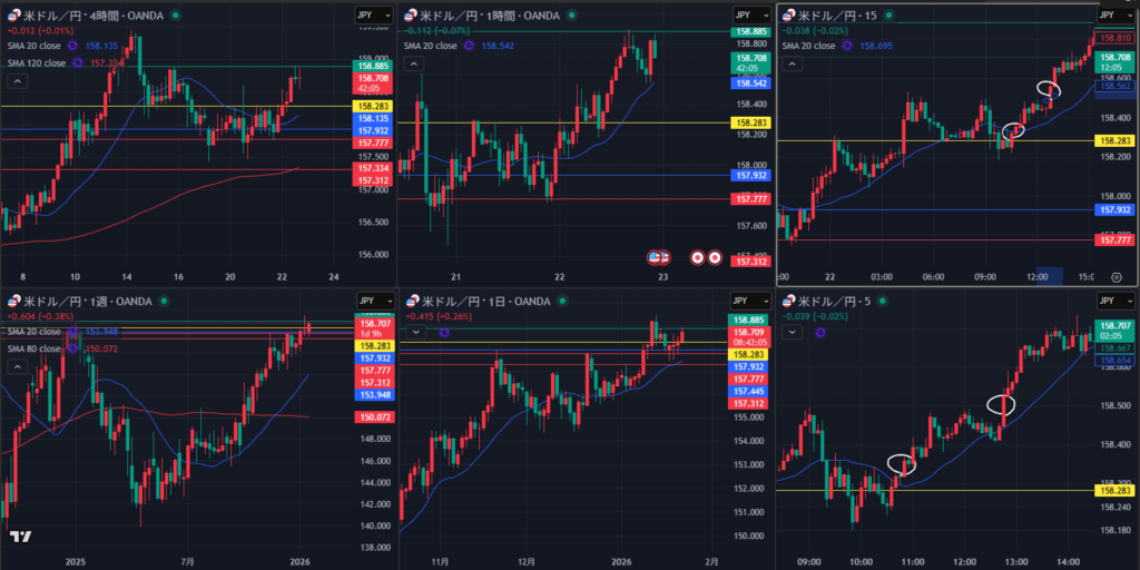 学び:4時間足の終値のタイミングを見る、実体が抜けてきている