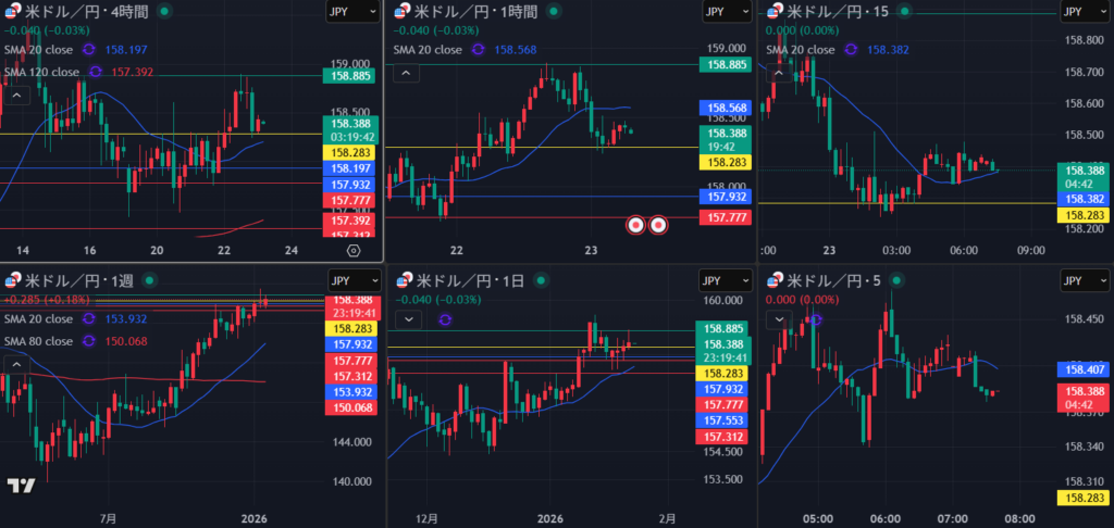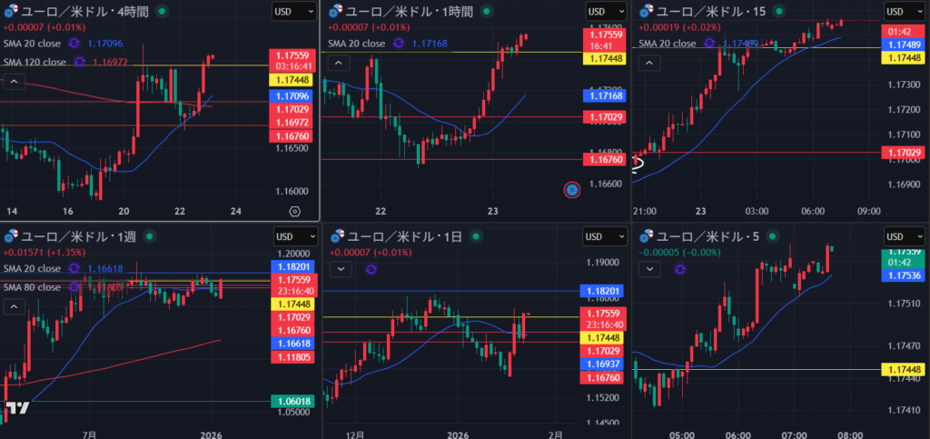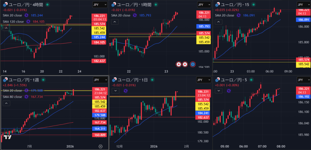 週足は高値で反発され方向感が無くなってきたかなというところ、日足高値越えトレ転 上昇の途中