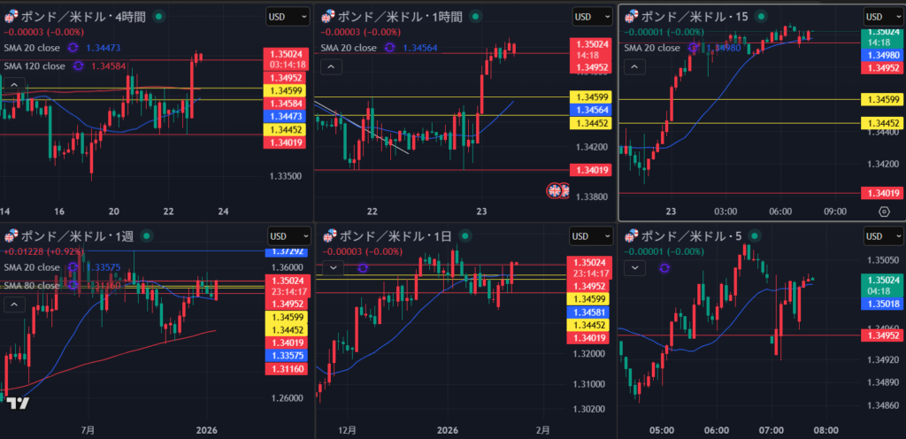 週足は上昇の波の途中、日足は押し目買いが入っているところだが、月足の節目が意識されている