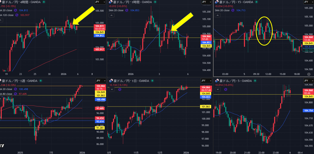仕事で見れなかったが朝のサポートから高値までの動きは、1・4時間の波に派生する可能性が