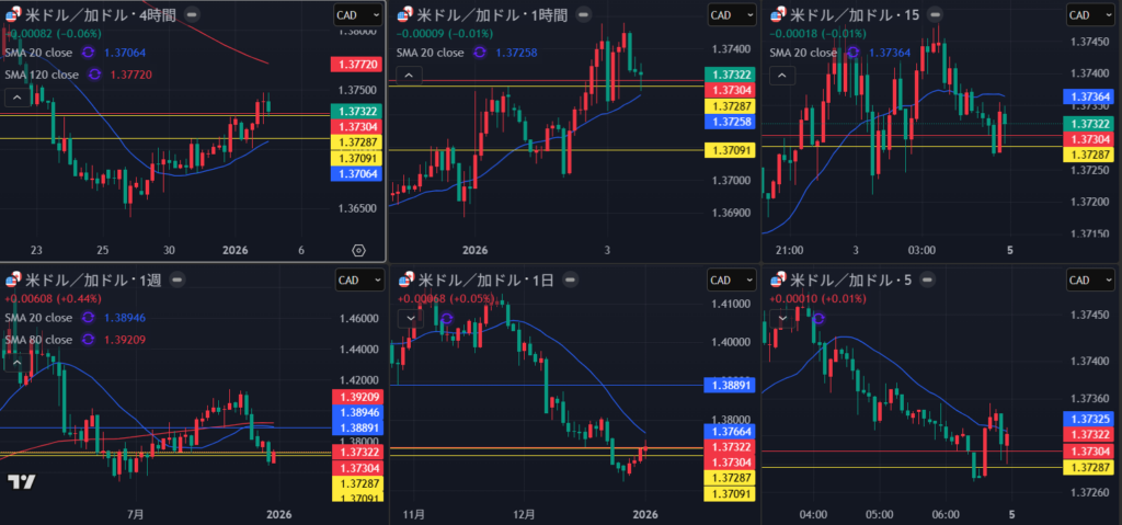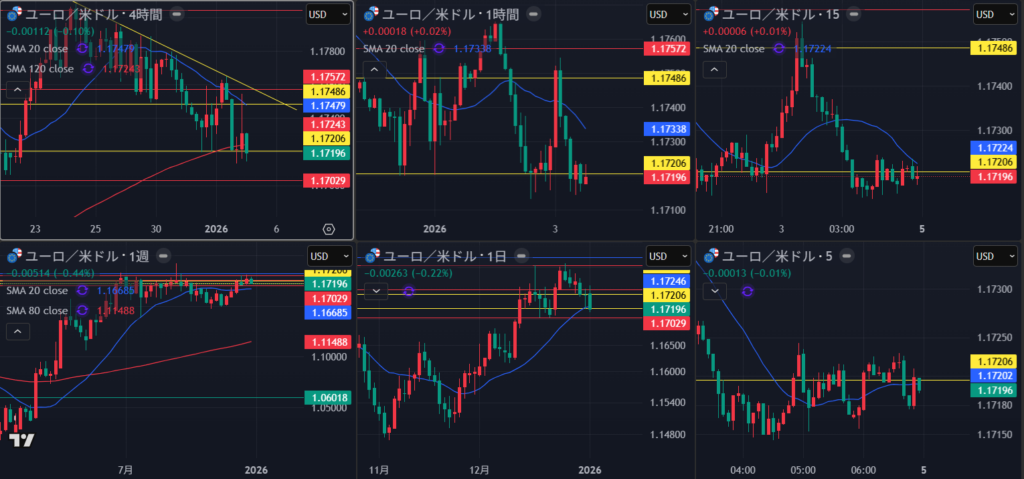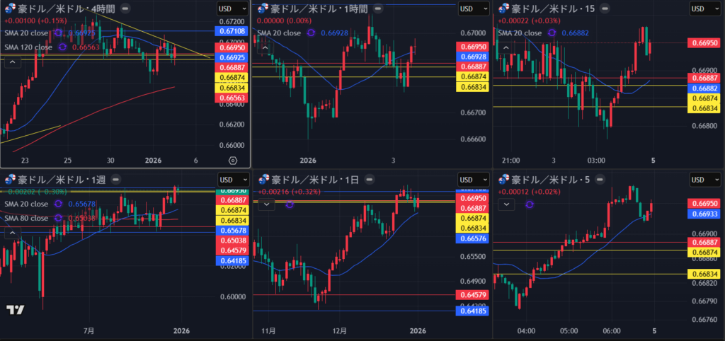 週足は安値割れ 日足は戻り売りのゾーン 4時間は高値抜けたところ