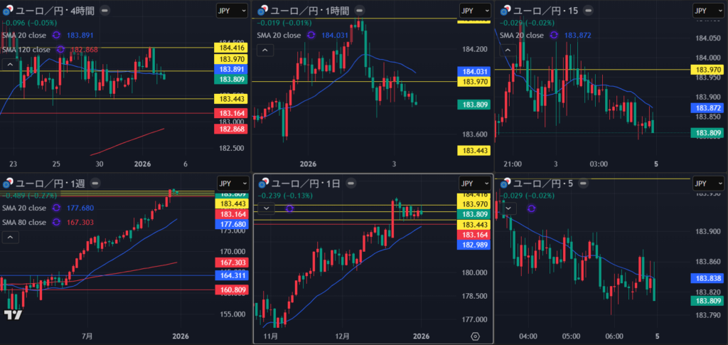 日足と4時間がぶち当たっているところなので戦争は仕掛けない