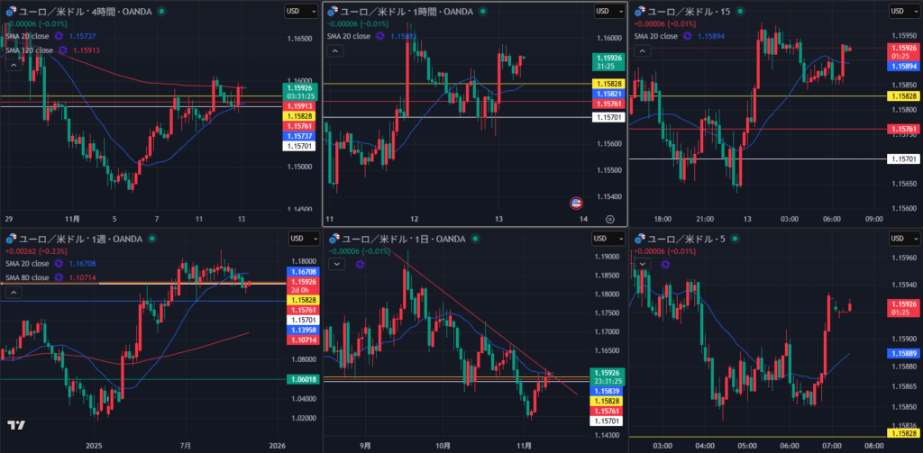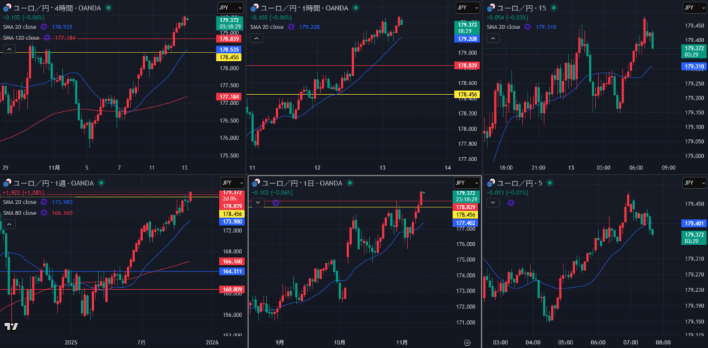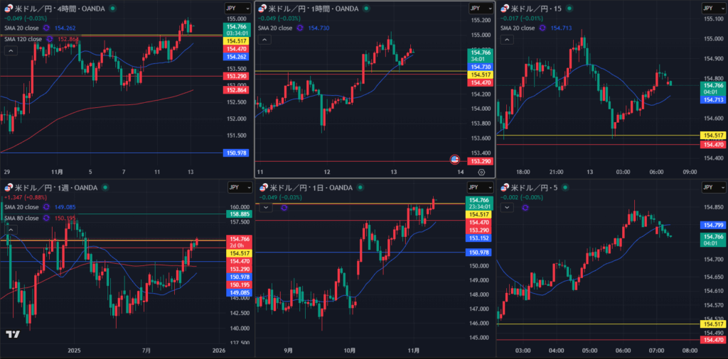 週足追随 日足高値抜け 4時間で押し入れば買い 1時間カウント全戻or戻り売り