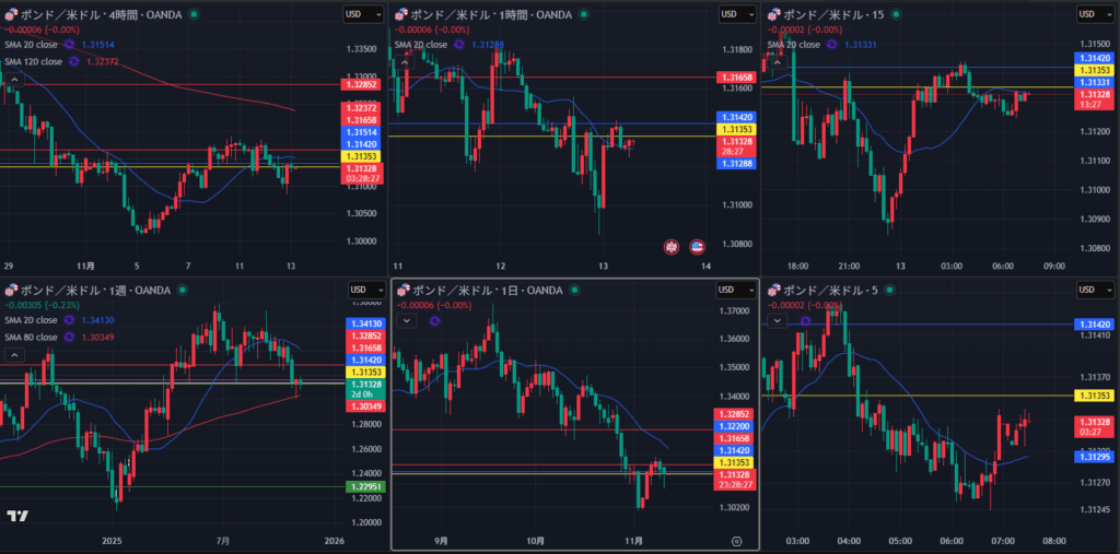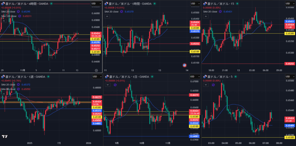 日足も底堅い動きからの4時間高値越え この波狙いたい 1時間足以下で確認 9:30豪指標
