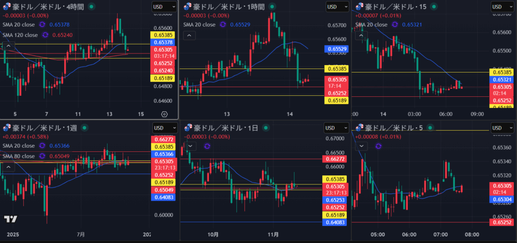 週足はまだ安値を割らず 日足は戻り売り入らずほぼ全戻し 4時間押し付けたら値幅的には