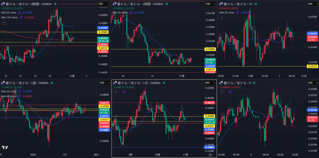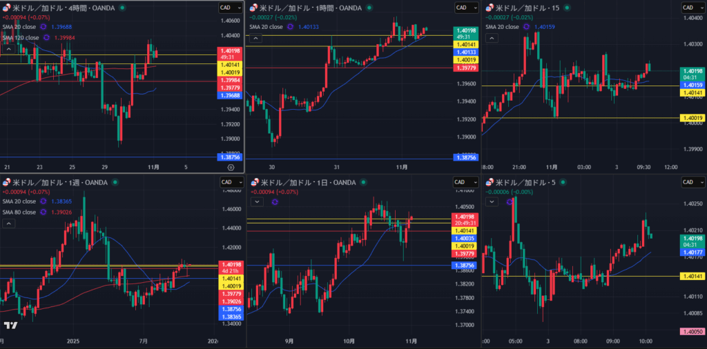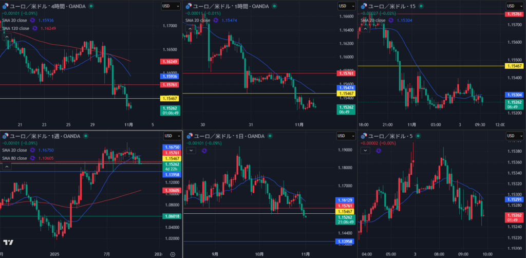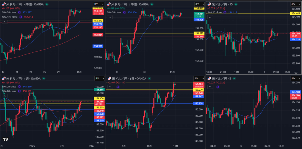 週足の節目に対して4時間も伸びきっている感があるので、やるなら日足の戻りを待つ