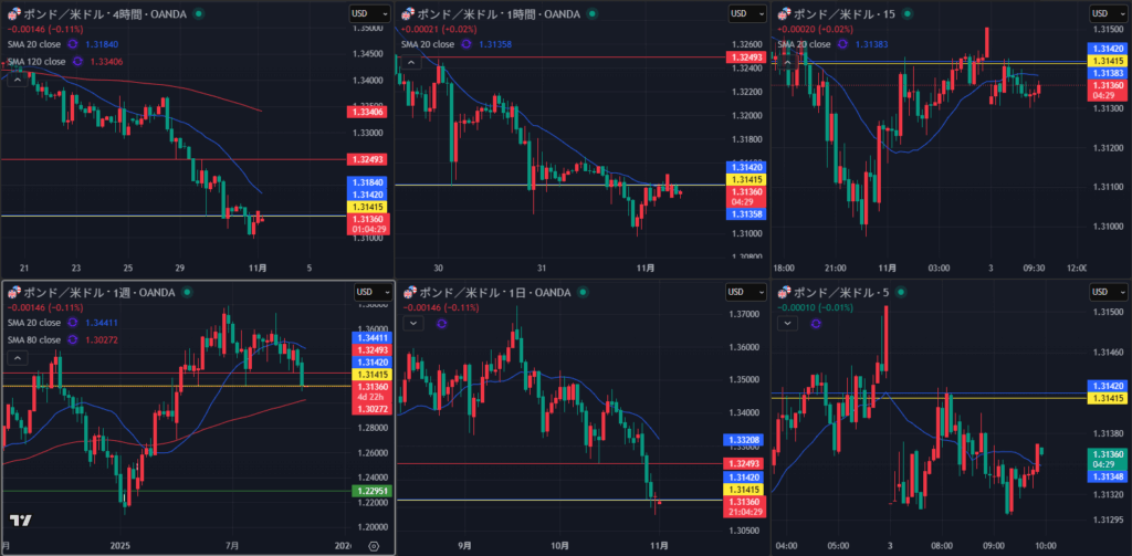 日足が完全に下になっていないところで判断すると4時間押し目買い(夜)かな