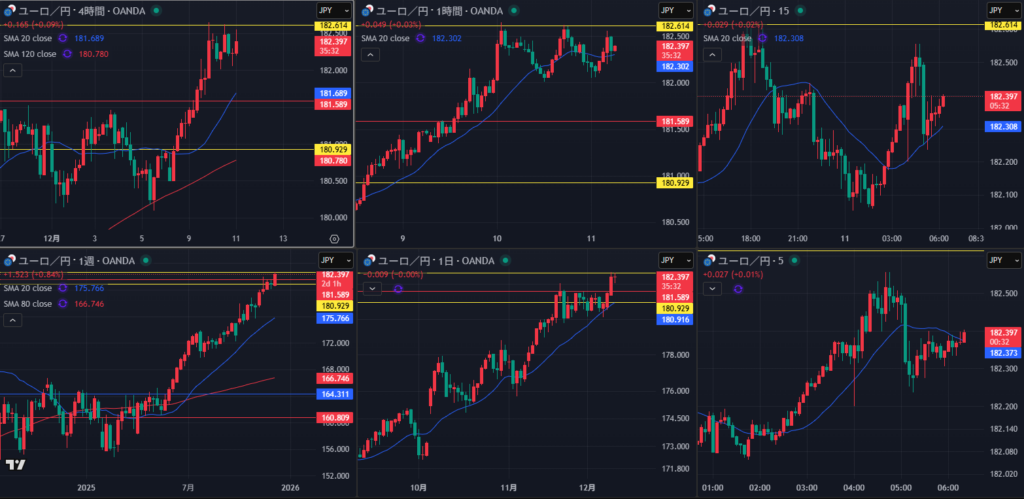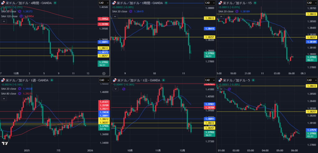 週足は上昇から一気に落としてきて日足は安値割って下落の波の途中