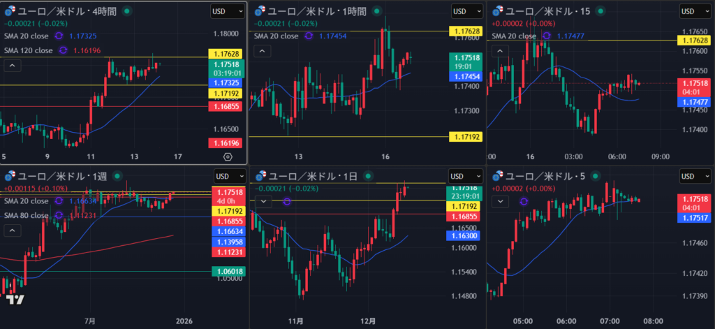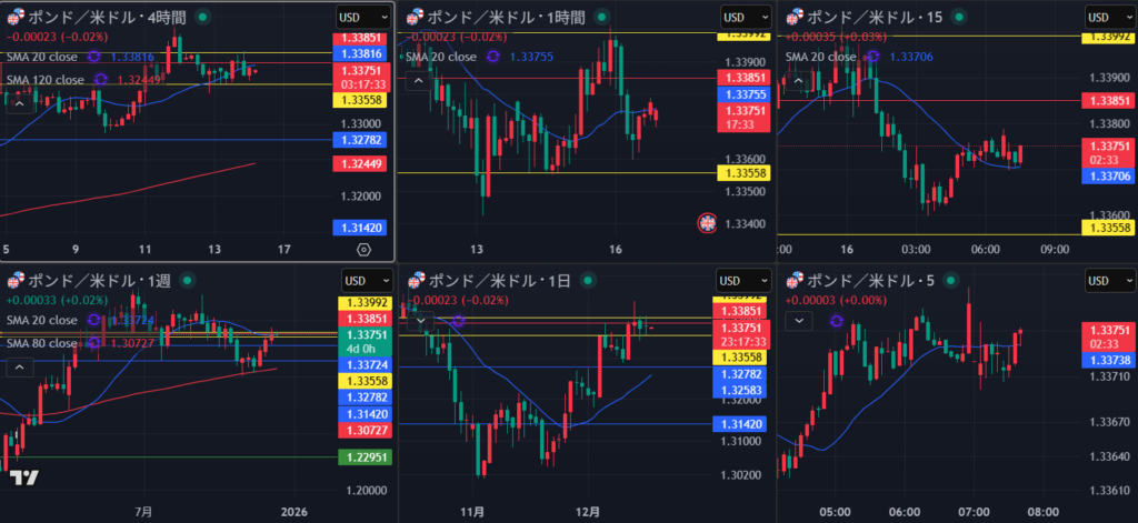 4時間が節目でサポートされるかがポイントだな 1時間だと下狙いたいが見れるか