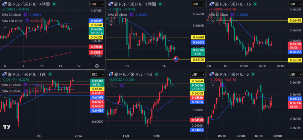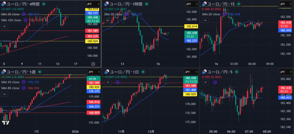 週足は上昇から一気に落としてきて日足は下落の波の途中