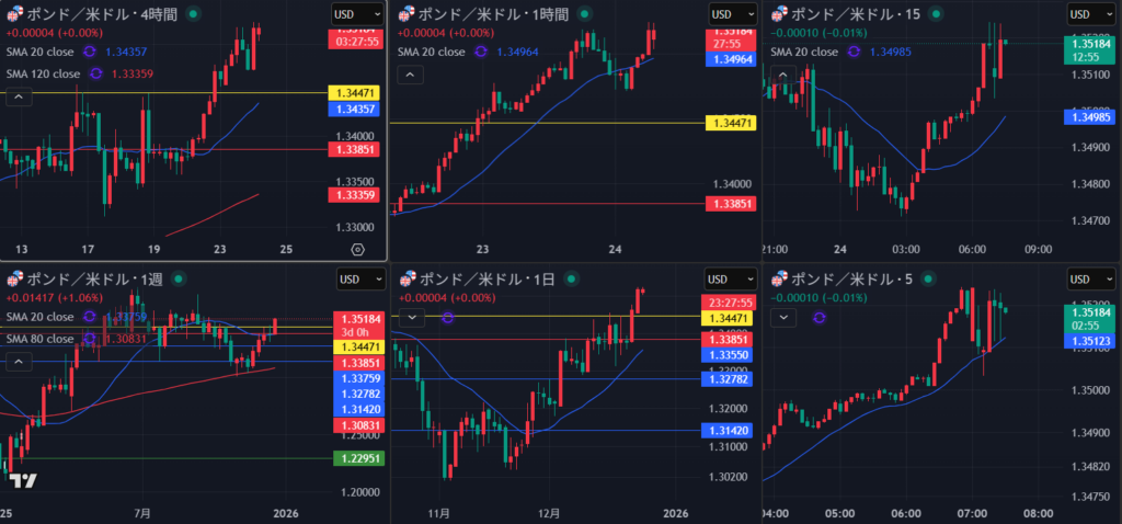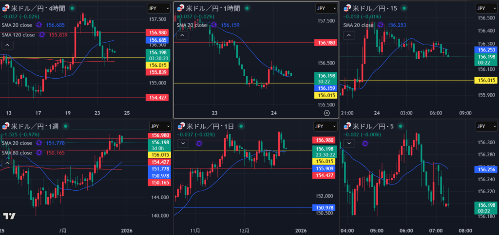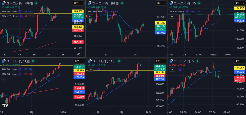 4時間は足早すぎで高値付近で様子見
