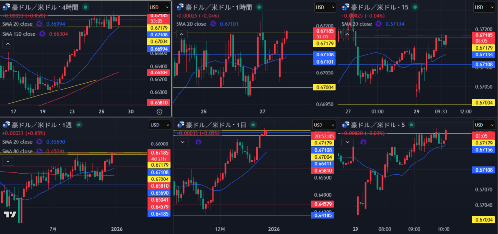 4時間は高値で揉み合い MA意識も考える
