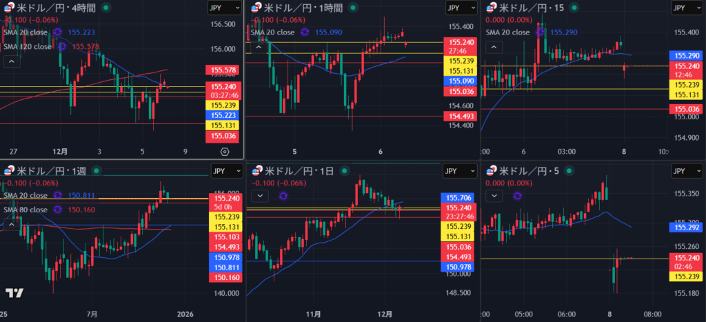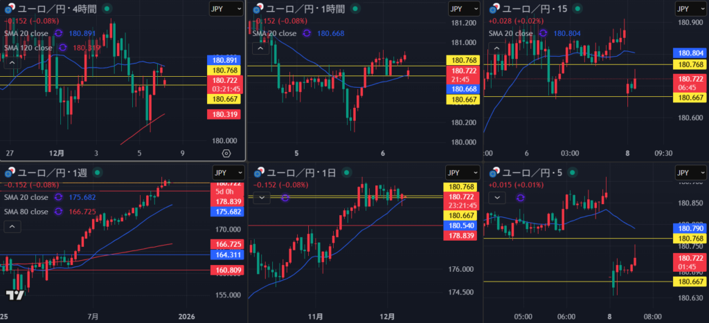 週上昇波の途中 日足もみ合ってるなMA支えられるか