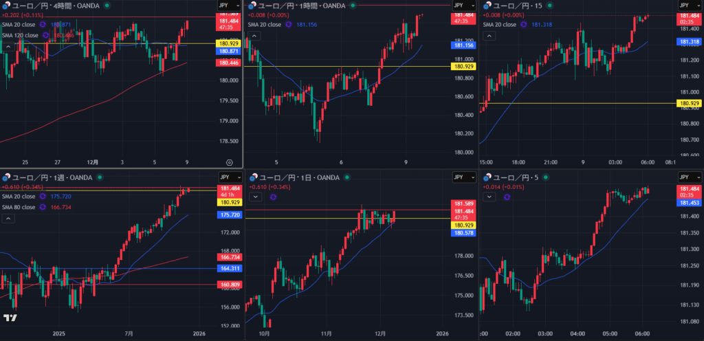 4時間安値割ったと見て波が出るか 欧州以降の判断