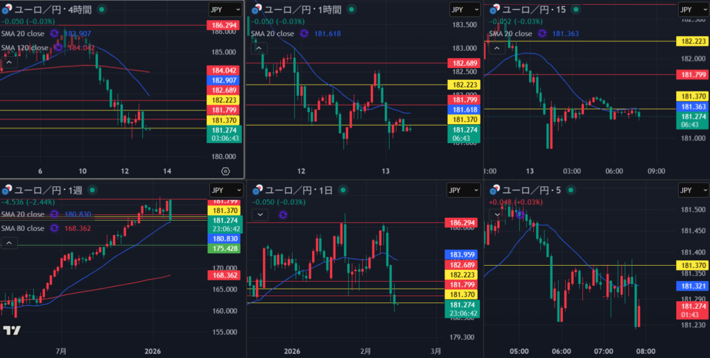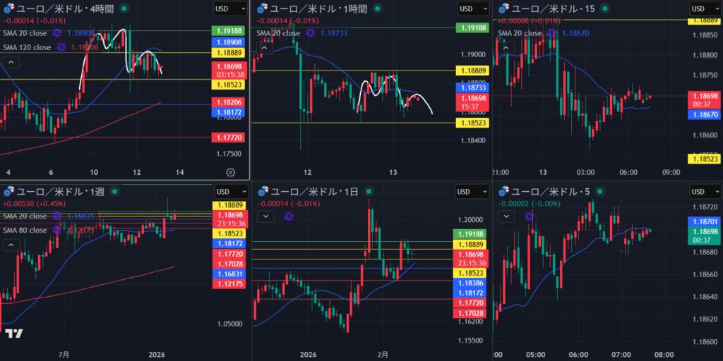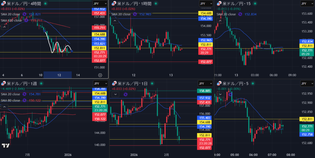 4時間がわかりにくいがサポートもありえるし、日足のMAを考えるとここでの売りは厳しいな