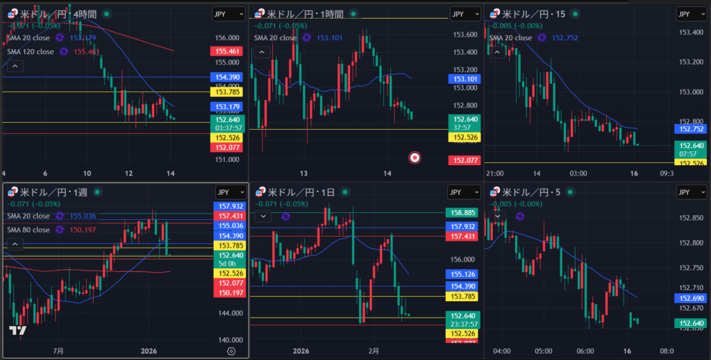 週足は安値を割って下落の波がスタート 日足は節目でサポートされるか