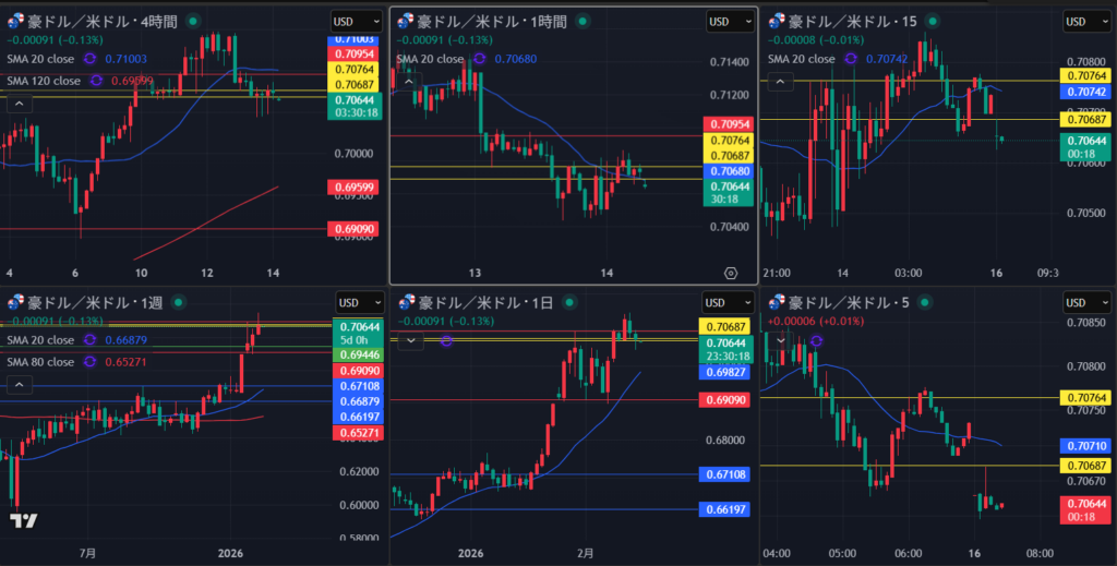 週足・日足は非常に買いが強い状態で見ている 日足は節目で押し目買いが入るか