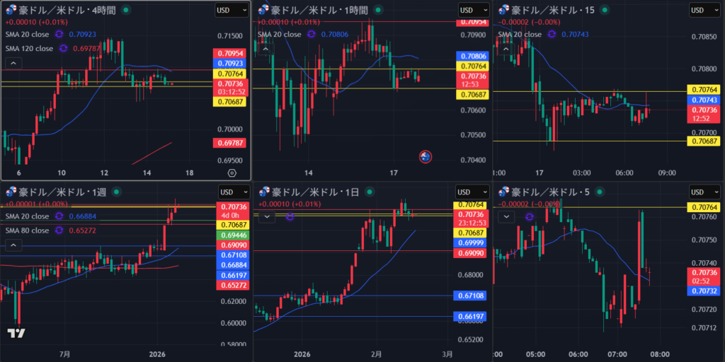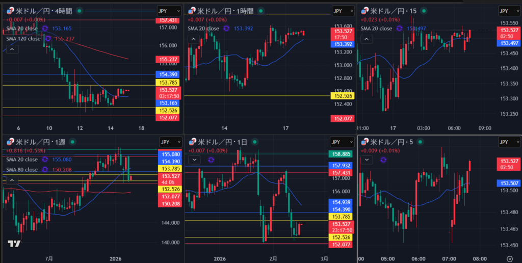 週足・日足は非常に買いが強い状態で見ている 日足は節目で押し目買いが入るか