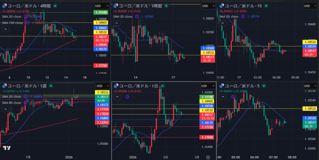 週足は下落の波の途中 下ヒゲ2本気になる 日足は安値切り上げ MAが反発ライン