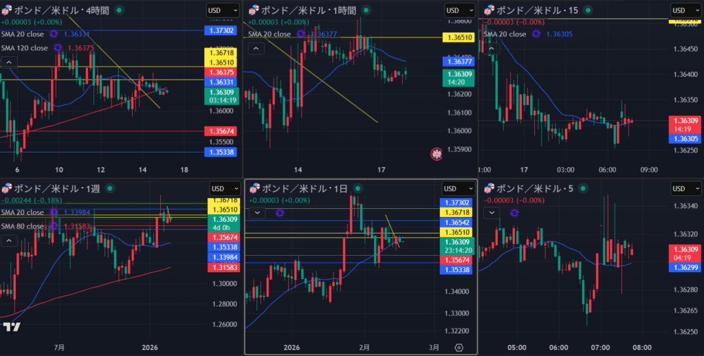 4時間はレジスタンス抜けてくるかだけど、日足リスクでここはまだ手は出さない