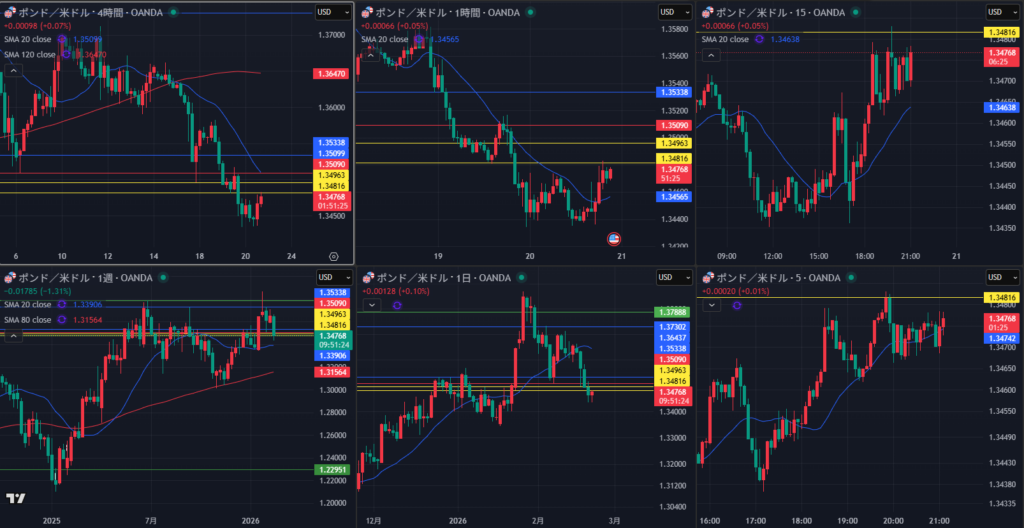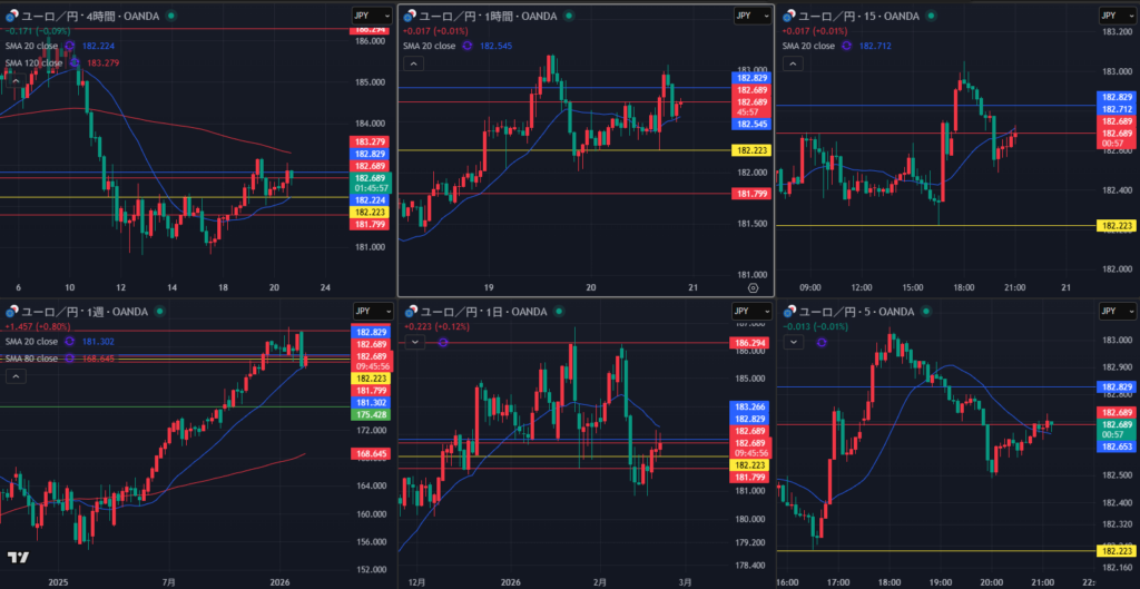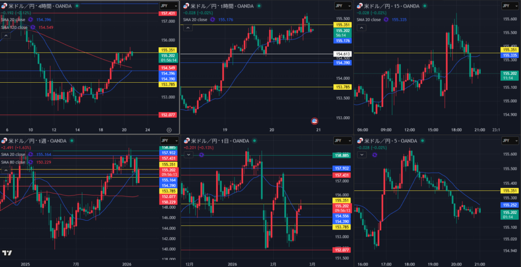 やっぱ4時間・1時間だいぶ迷ってんな 上値重いか