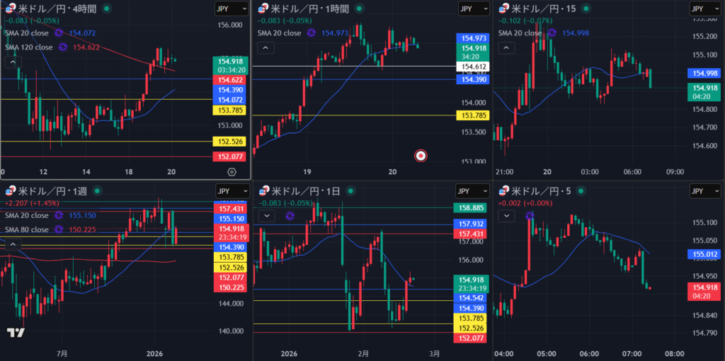 4時間トレ転後の押し目買いが入るか 日足VS4時間で狙い難いな