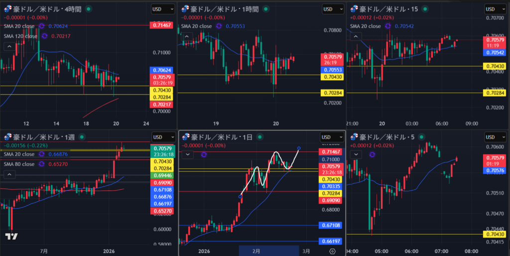 週足は下落の波の途中 下ヒゲ2本気になる 日足はWボトム 上げてくるか