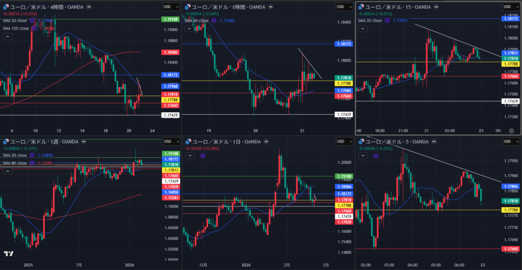 4時間は上位足の影響か 上値重く M形成してくる可能性あり