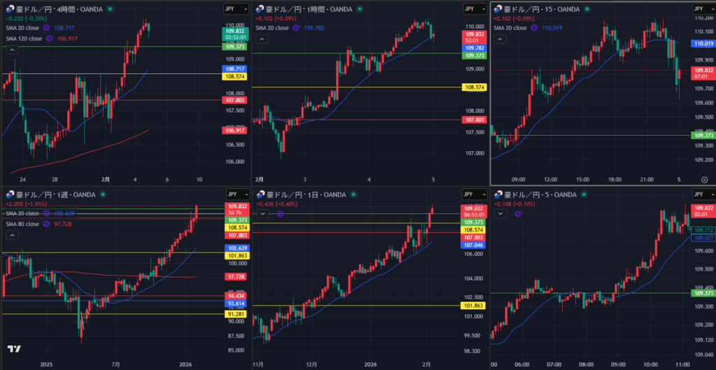 上位足の波を狙い、4時間がトレ転後の追随くるかという場面 オージー強いので今日の本命だったが