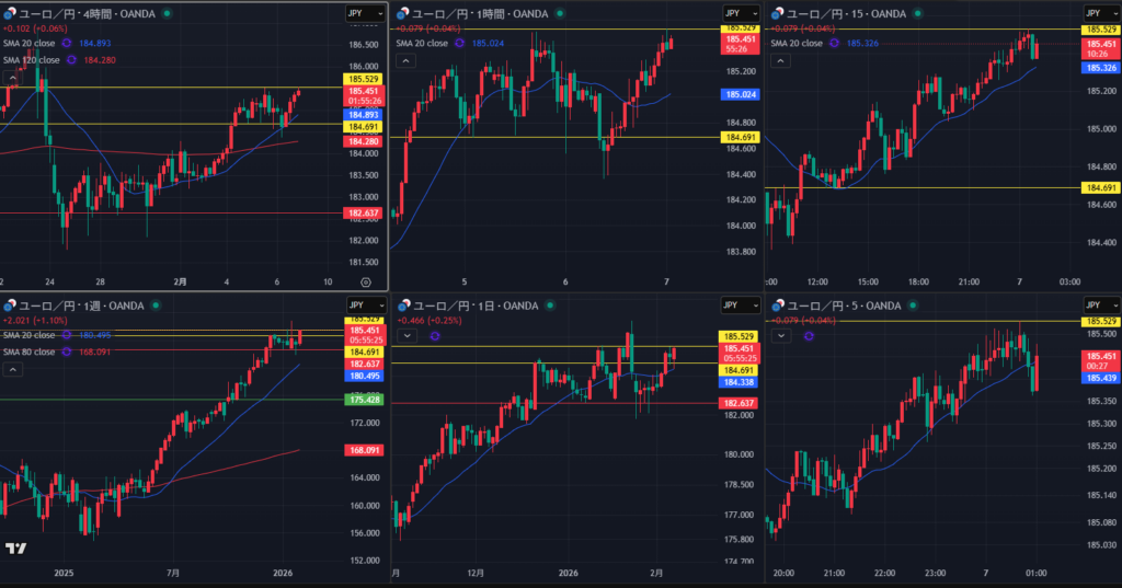 4時間が安値割れから一気に高値を試す展開になった クロス円全般同じ