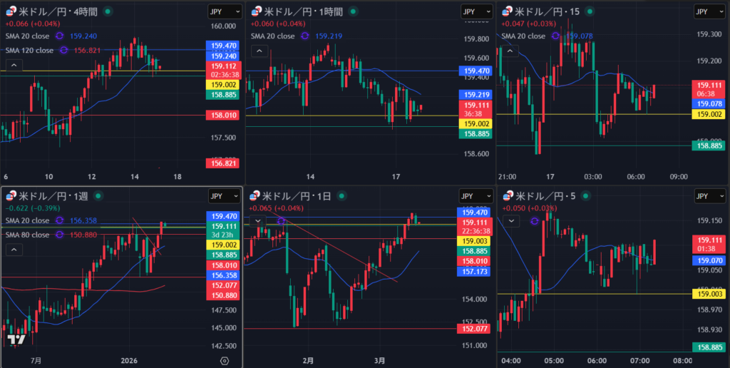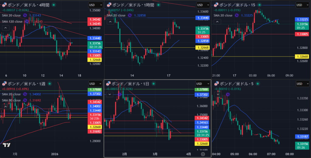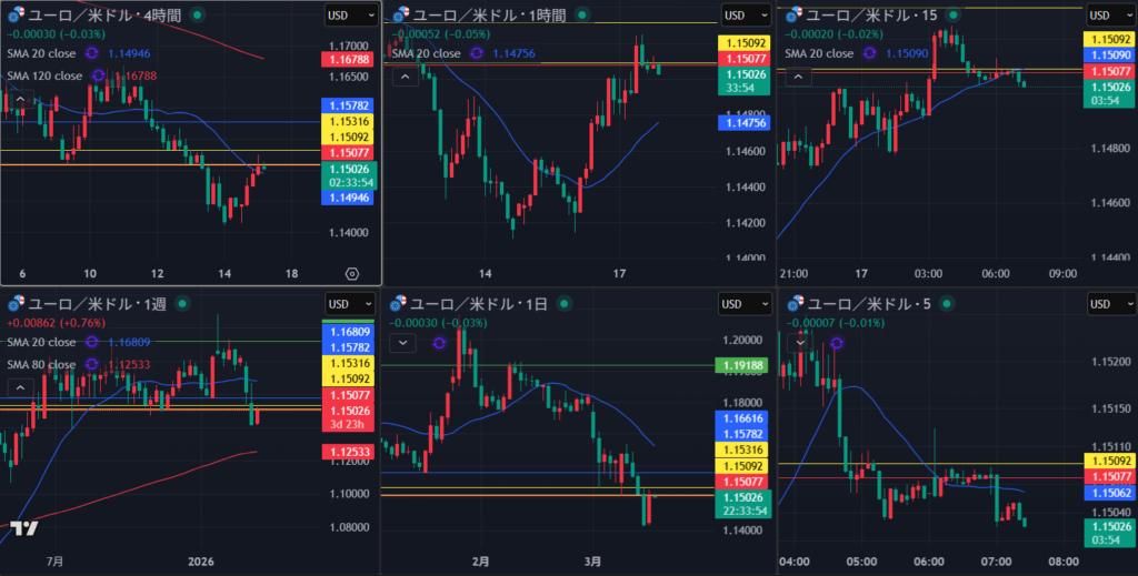 4時間の節目がわかりにくく判断厳しい 日足の流れでみていくべきか