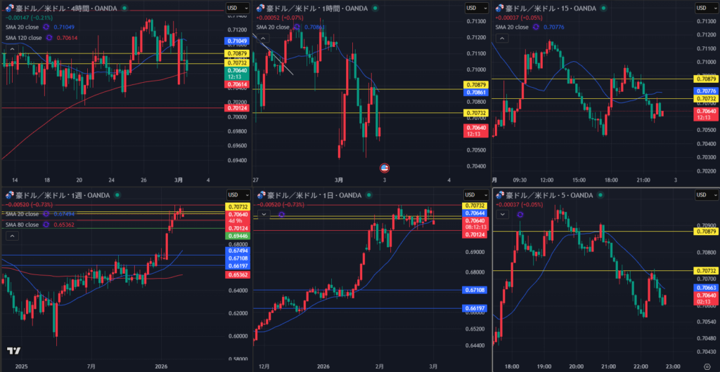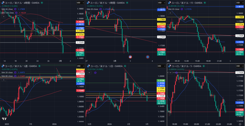 週末のアメリカ・イランで窓開けが発生すると判断し、どちらでも待ちになるとイメージ。