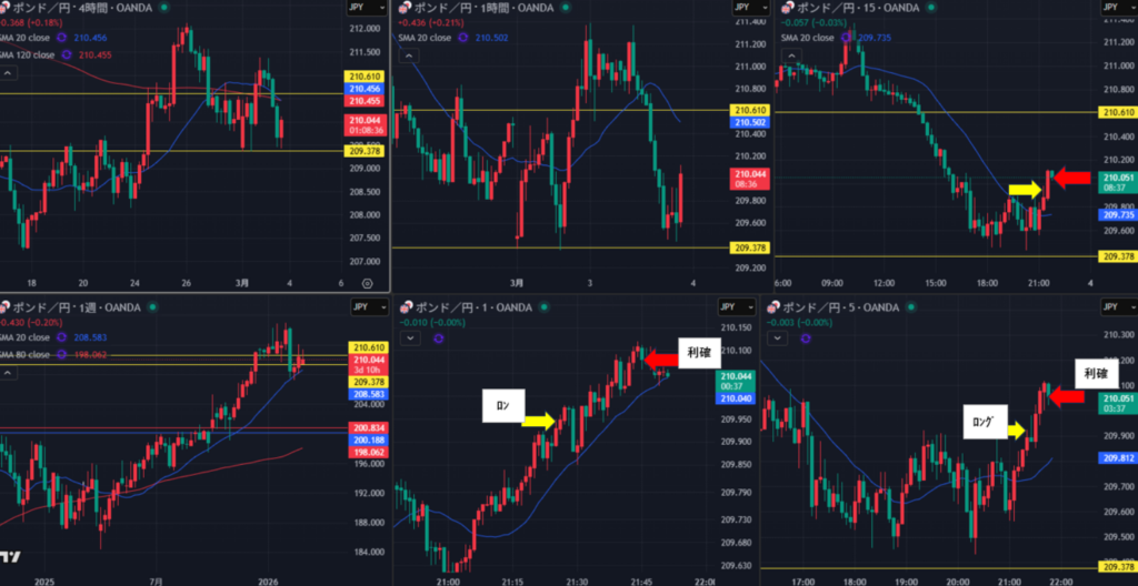 3/3(火)ポン円 ロング 21:25 209.949 21:45 210.088 +13.9pips
