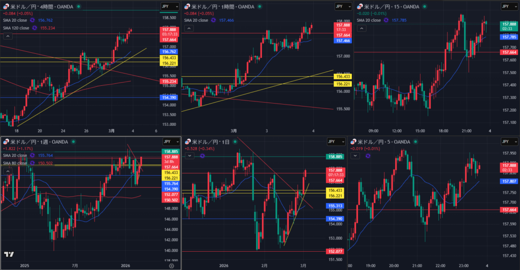 4時間だいぶ乖離してきたな ここは日足の節目もあったしスルーで良し