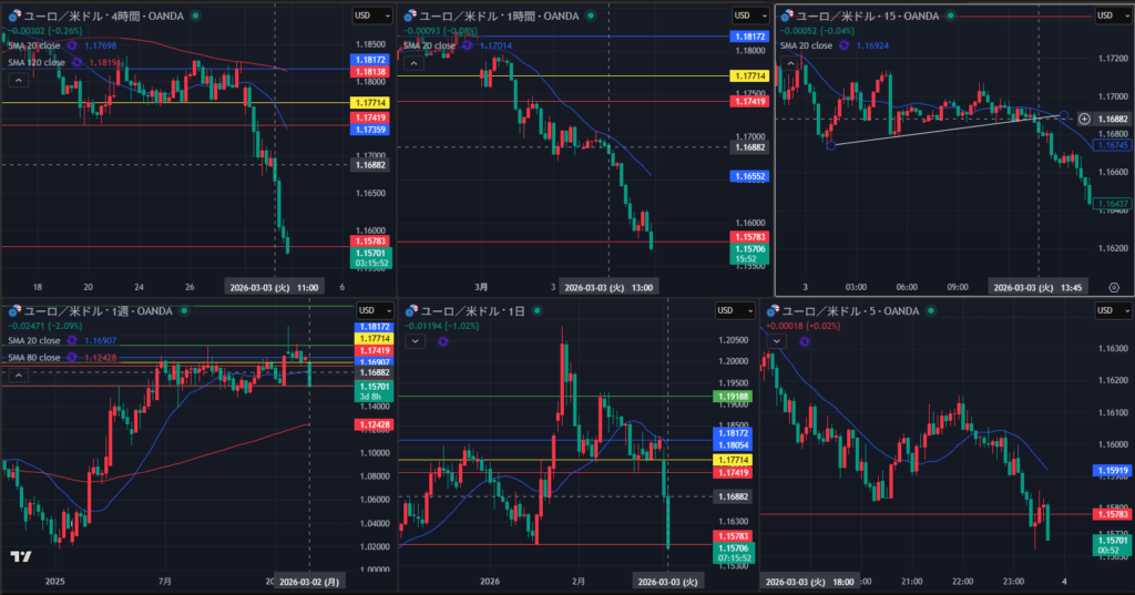 その後、15分3波狙いも5分で安値割れ逆からくる苦手なパターンでスルー