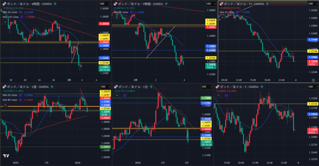 3/3(火)ポンドル ショート 14:13 1.33812 17:13 1.33146 +66.6pips