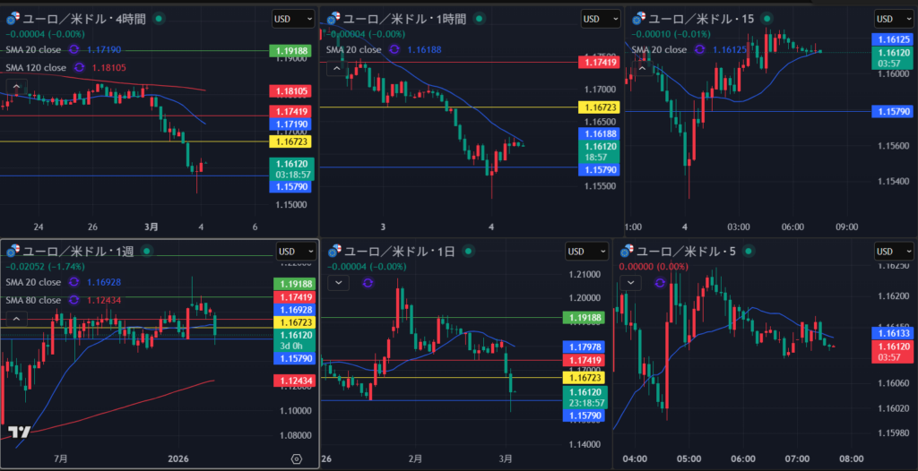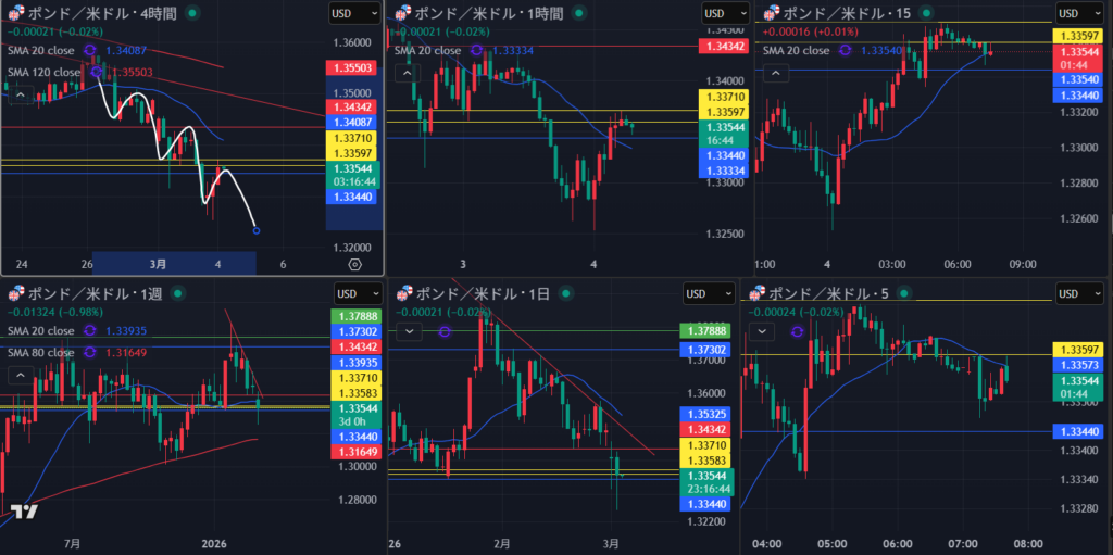 4時間は押しをつける場面 1時間底固め確認中 東京OPは少し早いが足早いパターンも視野