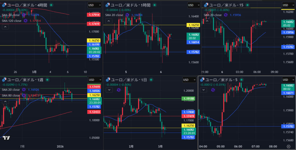 4時間の節目でどうなるか ユロドル同様反発狙い
