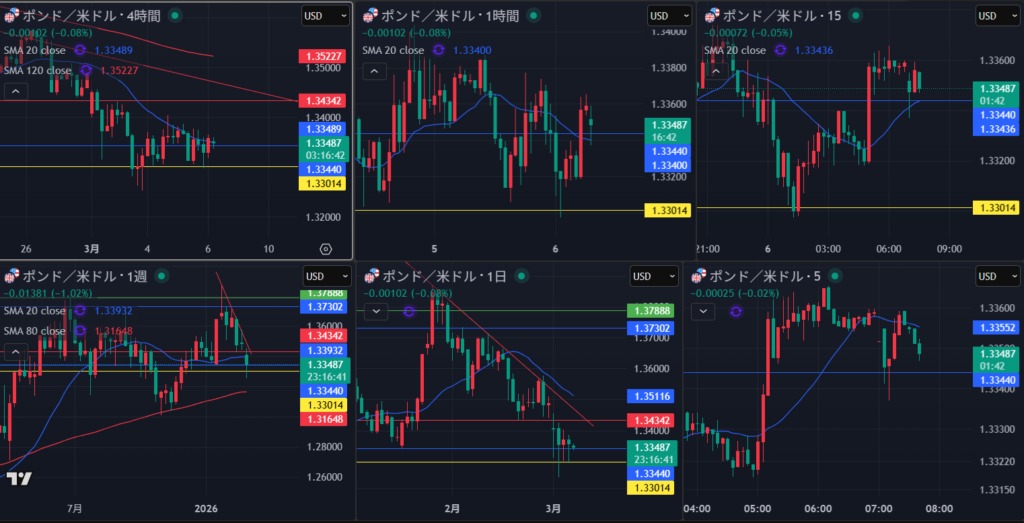 週足はまだ下方向 日足が上値重い状態から 4時間はトレ転で節目で押し目買い狙い